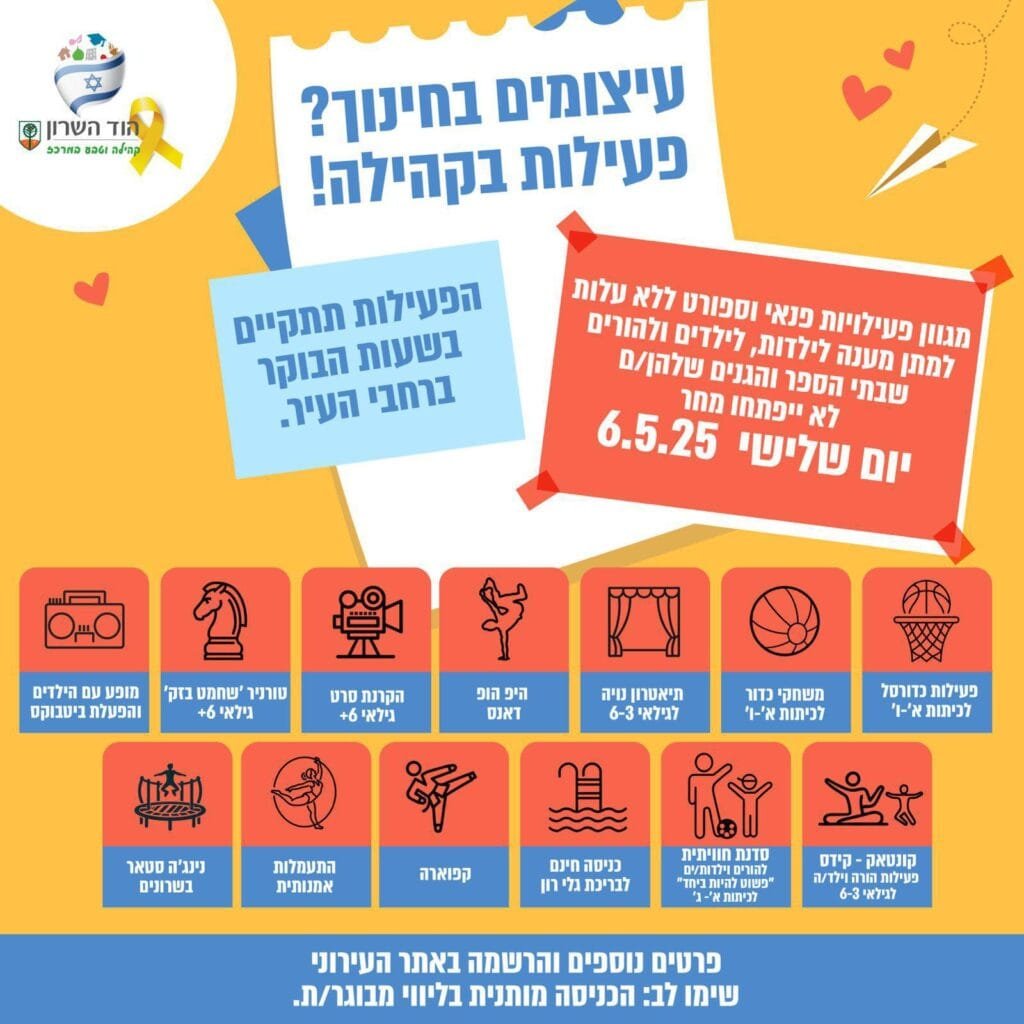במידה ותוחזר פעילות מערכת החינוך, פעילויות אלו לא יתקיימו.